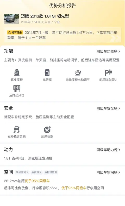 综合来看,这辆迈腾2013款 1.8TSI 领先型虽然车龄较长,但价格相对较低,适合对车辆性能有一定要求且预算有限的消费者。当然,在购买前还是建议您对车辆进行全面的检查和评估,确保车况良好再做决定。