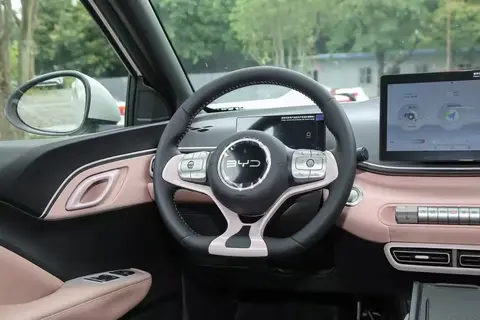 不过,也不是一点没有变化,新车取消了萌芽绿车漆,保留北冰蓝、暖阳白、极夜黑、蜜桃粉车身配色,尾部的“BUILD YOUR DREAMS”英文标识替换为“BYD”字母车标。此外,活力版继续配备15英寸钢制轮毂,自由版和飞翔版换装全新样式的16英寸铝合金轮毂。