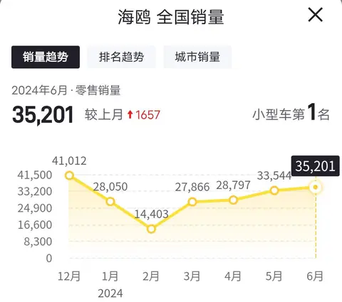 相较于五菱宏光MINIEV、长安Lumin等微型电动车,海鸥拥有更长的续航里程,并且前后四门的设计也令其实用性更强,加上主被动安全配置稍微丰富一些,自推出以来,俨然已经成为小型电动车细分市场的“一哥”,最近两个月的销量更是超过3万台,可以说非常强势。
