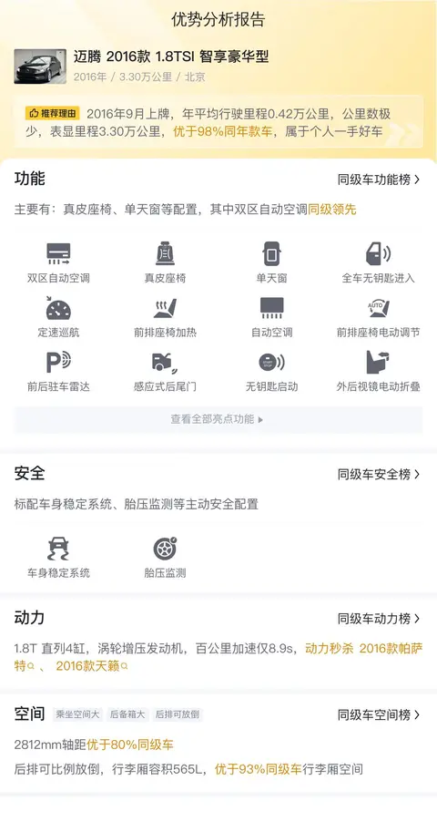 综上所述的用车成本、市场行情、优势分析、同款比价等数据仅供参考,车况信息需要线下结合车辆实际情况进行综合参考,祝您购车愉快。