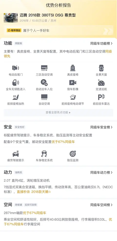 综上所述的用车成本、市场行情、优势分析、同款比价等数据仅供参考,车况信息需要线下结合车辆实际情况进行综合参考。
