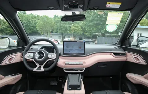 其次在内饰部分,2025款海鸥的前排布局变化不大,同样是造型比较个性的T字形布局,同时整个车内的颜色用料搭配也能够营造出不错的视觉高级感,但是从触感上来讲的话,其实还是会有低价车的那种廉价感,毕竟成本也在那摆着。不过从整车的功能配置上来看的话,即便是入门版本的比亚迪海鸥,也给到了7英寸的全液晶仪表,以及10.1英寸的自适应旋转中控屏和主副驾驶带有照明灯的化妆镜。