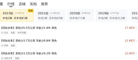 在全国范围内与本车相似的仍有很多车源,我们把这些车源的价格信息以图片的形式为大家展示一下。