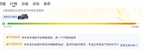 综上所述的新车含税价、用车成本、市场行情、优势分析、同款比价等数据仅供参考。在配置部分,因为二手车非标品,车辆可能会存在配置改装的情况,具体车况信息需要线下结合车辆实际情况进行综合参考。