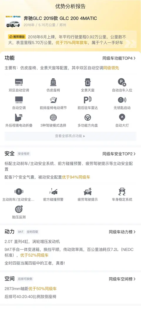 奔驰GLC(图片|配置|询价)自从在北京奔驰国产以来,销量成绩一直保持的不错,根据懂车帝数据中心显示,奔驰GLC在中型SUV销量榜排第5位。可见喜欢他的朋友并不在少数。今天呢,我们就为您带来一辆二手奔驰GLC,看看这辆车是否符合您的心意,咱们往下看详细信息。