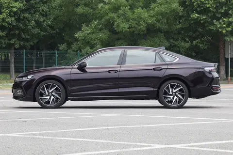 车身设计上,迈腾B9拥有接近5米的车长和流畅的腰线设计,车辆显得更加修长。腰线从前翼子板延伸至尾灯,增加了视觉动力感。车窗周围的镀铬装饰条与车身形成对比,增强了视觉效果,而五辐式铝合金轮进一步强化了车辆的运动感。