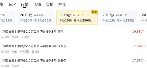 市场行情部分,这辆车的当前市场行情大约在17.18万到21.53万元之间,这里要说的是,市场行情价和最终成交价是有差异的,车辆的最终售价会由车龄、里程以及保养情况等不同变量所决定。
