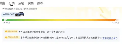 综上所述的新车含税价、用车成本、市场行情、优势分析、同款比价等数据仅供参考。在配置部分,因为二手车非标品,车辆可能会存在配置改装的情况,具体车况信息需要线下结合车辆实际情况进行综合参考。