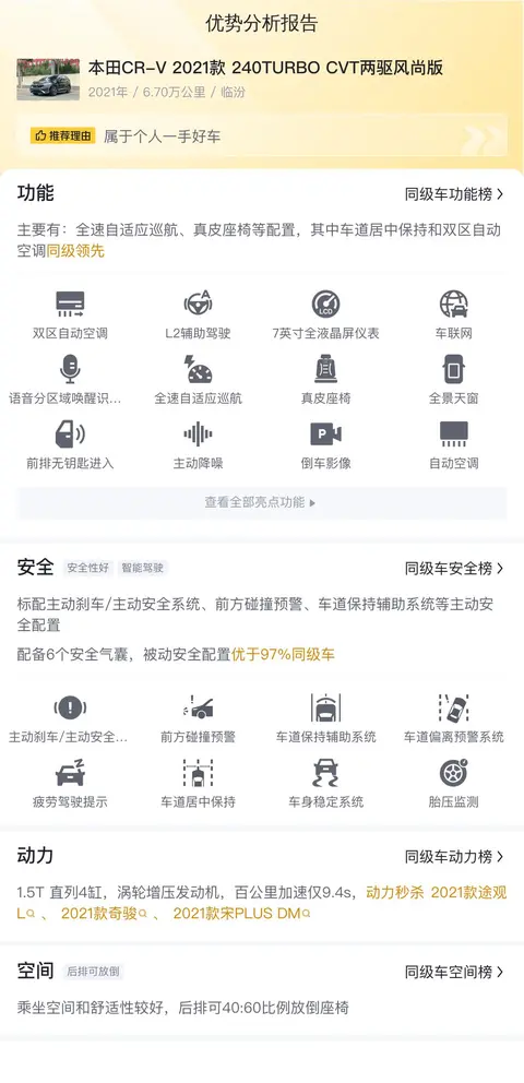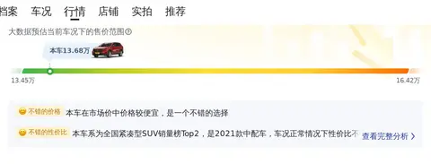 综上所述的新车含税价、用车成本、市场行情、优势分析、同款比价等数据仅供参考。在配置部分,因为二手车非标品,车辆可能会存在配置改装的情况,具体车况信息需要线下结合车辆实际情况进行综合参考。