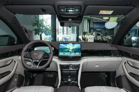 关于内饰部分,深蓝S07采用的是环抱式科技座舱,而宋PLUS DM-i则为传统双屏布局,看着中规中矩。值得一提的是,虽然深蓝S07方向盘的前方没有全液晶仪表盘,但是却配备了一块大尺寸的AR-HUD抬头显示系统,还能够与中控屏互联,在前挡风玻璃上显示丰富的信息数据。在中控屏方面,深蓝S07的屏幕尺寸达到了15.6英寸,略大于宋PLUS DM-i,并且内置了高通骁龙8155芯片。