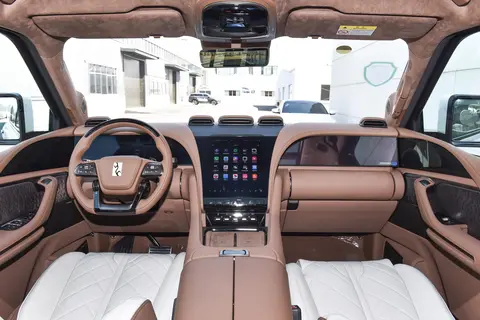 仰望U8豪华版车内采用“星环座舱”理念,配备12.8英寸OLED曲面屏,倾斜角度为37度,23.6英寸全液晶仪表和副驾娱乐屏从曲面屏后方穿过。后排则配备2块12.8英寸屏幕,可以和前排屏幕进行联动。仰望U8配备四辐方向盘,方向盘顶部还配有辅助驾驶提示灯,下方还可以用来调节驾驶模式和地形模式。