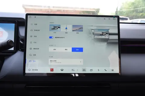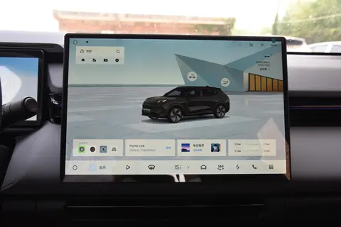 进入车内,车内的层次感很强,台面采用上下两层设计,皮质面料包裹,中间位置则是设计了空调出风口。同时车内还配置了一块12.3英寸仪表盘、15.4英寸的中控屏,其中仪表盘采用了全液晶彩色屏幕,分辨率达到了1920x720,而中控屏采用了LCD材质,屏幕分辨率达到了2.5K,画质清晰且细腻。功能方面表现也很全面,中控屏搭载了与魅族深度融合打造的LYNK Flyme Auto车机系统,并且内置了两块“龍鹰一号”智能芯片,提升了系统的流畅度。