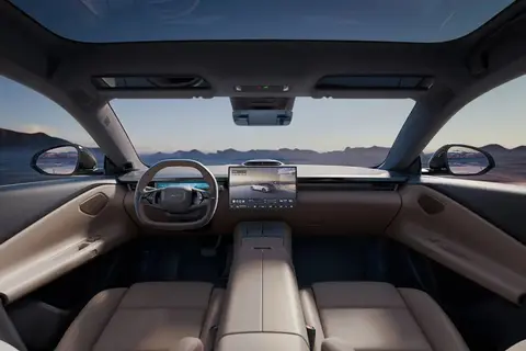 智能座舱方面,新车搭载12.66英寸仪表盘+15.4英寸中控屏+25.6英寸AR-HUD抬头显示,车机搭载 LYNK Flyme Auto 系统,拥有四音区智能语音助手,芯片为AMD V2000A。