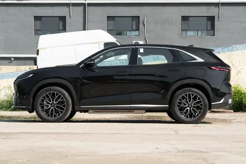长宽高为4736x1968x1708mm,轴距为2820mm,定位中型SUV。车身采用了多条腰线进行勾勒,车身呈现出俯冲姿态,提升了车身的运动感和力量感。车窗上沿配上了一根银色饰条点缀,在D柱处形成一个倒钩的样式。配备隐藏式门把手,轮眉和侧裙都采用黑色护板包覆,搭载多辐式铝合金轮毂和245/60 R18尺寸的轮胎。