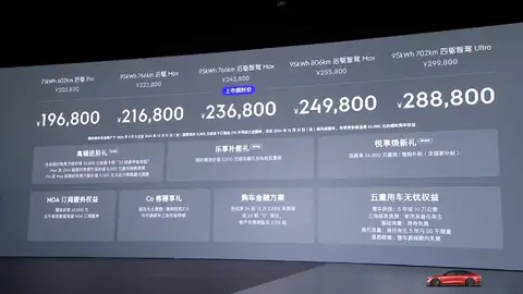 在动力系统方面,领克Z10与小米SU7一样,同样是给到了400V平台和800V平台的版本,同时也有单电机和双电机两种动力形式。那么对于低配版本的领克Z10来说,该车型给到的是一台最大功率200kW的驱动电机,百公里加速时间只有6.8秒,对于一台20万级的中大型纯电轿车来说并不快,但满足日常通勤代步也是完全够用的。续航方面的话,领克Z10提供71kWh和95kWh的电池包,入门版车型的纯电续航只有602公里,而对于长续航版本的领克Z10来说,该车的纯电续航来到了806公里。