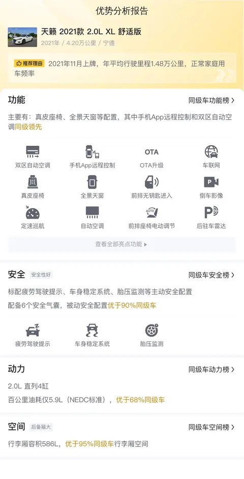 综上所述的新车含税价、用车成本、市场行情、优势分析、同款比价等数据仅供参考。在配置部分,因为二手车非标品,车辆可能会存在配置改装的情况,具体车况信息需要线下结合车辆实际情况进行综合参考。