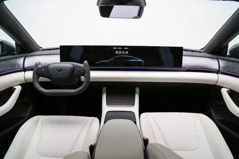 进入车内,新车配备35.6英寸的超大贯穿屏,能够兼顾仪表盘、中控屏和副驾屏的功能。半辐式的方向盘设计十分独特,酷似飞机操纵杆,也有普通样式可选。车内配备了炫彩氛围灯,中控台下部提供手机无线充电面板。智能座舱方面,新车引入端到端大模型,语音助手SIMO也将升级为2.0版本。