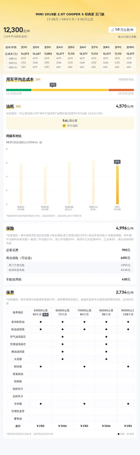 接下来,我们来看一下这款二手MINI的市场行情。目前,该车型的二手车价格区间在13.64万至16.97万之间,而本车的报价为15.98万,在市场价合理范围内。关于用车成本方面,我们对这款车在全国的保有量及其近半年的销量进行了统计和分析,并将通过图片的形式向您展示该车在市场上的表现如何。