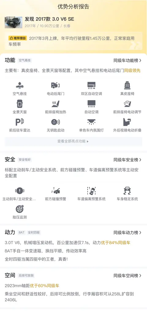 综上所述的新车含税价、用车成本、市场行情、优势分析、同款比价等数据仅供参考。在配置部分,因为二手车非标品,车辆可能会存在配置改装的情况,具体车况信息需要线下结合车辆实际情况进行综合参考。