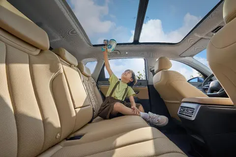 新车主、副驾座椅分别实现八向、四向电动调节,从座椅造型到填充物都经过了20多轮优化。前排座椅有三档通风加热功能,寒冬酷暑出行依然舒适。带遮阳帘的1.2平方米感触式广角全景天窗,带来开阔视野。