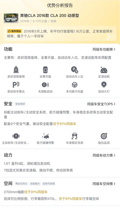 综上所述,尽管这台二手奔驰CLA存在一些不可避免的使用痕迹和小瑕疵,但整体而言,其车况良好,且已经过多项专业检测的严格验证,无疑是一个性价比不错的选择。接下来,让我们深入了解一下这款车的各个方面,助您做出更加明智的购车决策。