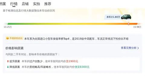 二手MINI 2019款 2.0T COOPER S 艺术家 五门版的市场行情价为 13.25 万-15.98 万,而其二手报价为15.8万,虽然报价略高,但考虑到其良好的车况,还是具有一定的竞争力的,性价比也是一目了然的。