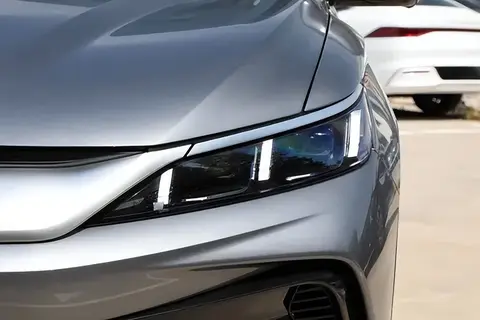 第二代宋Pro DM-i在外观设计上进行了优化,基于比亚迪的“龙颜美学”设计理念。前脸部分采用了“龙须”和“龙眸”灯组设计,前灯和宽大的车头设计增强了视觉效果,提升了辨识度。车身侧面保持了现款的整体轮廓,通过黑化处理和新的双五辐轮圈设计增强了运动感。尾部设计采用贯穿式尾灯,并使用了“BYD”字母标识,整体风格更加简洁,辨识度提升。