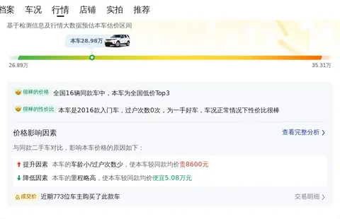 [这辆发现2016款3.0SC曜黑典藏版SE是一款中大型SUV,车身颜色为白色,行驶里程为22万公里,该车符合国VI排放标准,能适应各种燃油品质。车辆于2017年1月在嘉兴上牌,并且车源所在地也在嘉兴,目前该车为个人一手车,未曾有过过户记录。在价格方面,这款车的新车指导价为82.8万,而现在的二手车报价仅为28.98万,相比新车价格便宜了53.82万,性价比相当的高,对于想拥有一辆豪华中大型SUV但预算又不高的消费者来说,无疑是一个极好的选择。