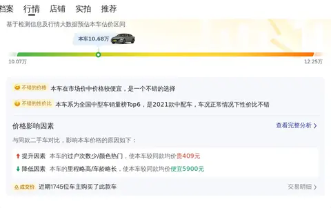 市场行情方面,懂车帝大数据分析,该车市场行情在10.07-12.25万之间,该车报价10.68万,报价偏低,预计该车未来三年内折价较少,保值率较高,这款车在懂车帝网站关注度挺高的,排名位列中型车销量榜第7位,而且该车目前行驶里程数较少,未经过过户,属于一手车源,这些都为其增加了可信度和吸引力。