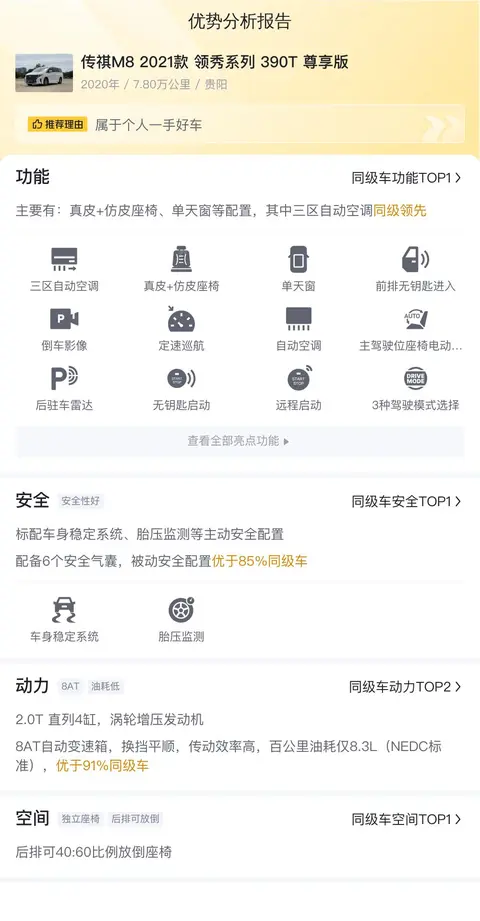 通过上述的分析,希望可以帮助到正在选车的车友们,总的来说,传祺M8 2021款 领秀系列 390T 尊享版还是非常适合家庭使用的。
