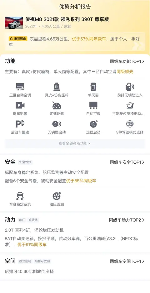 综上所述的新车含税价、用车成本、市场行情、优势分析、同款比价等数据仅供参考。在配置部分,因为二手车非标品,车辆可能会存在配置改装的情况,具体车况信息需要线下结合车辆实际情况进行综合参考。