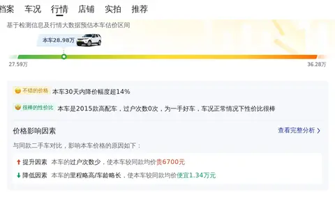 该车是2015年4月在咸阳上的牌照,至今行驶了16.19万公里,0过户,属于一手车源。新车指导价为92.8万,目前二手车报价为28.98万,相比新车省下了63.82万。车身颜色为黑色,内饰为深色。