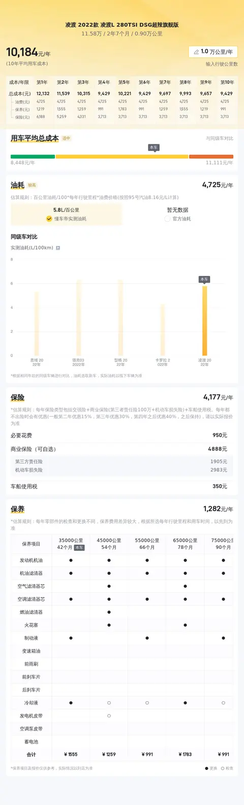 据估算,同级车的最低用车成本是5645元/年,最高是12468元/年,凌渡 2022款 凌渡L 280TSI DSG超辣旗舰版是10333元/年,所以不算低,算是正常水准。