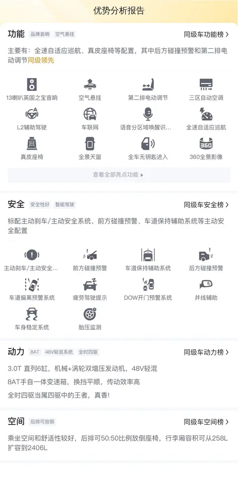 综上所述的新车含税价、用车成本、市场行情、优势分析、同款比价等数据仅供参考。在配置部分,因为二手车非标品,车辆可能会存在配置改装的情况,具体车况信息需要线下结合车辆实际情况进行综合参考。