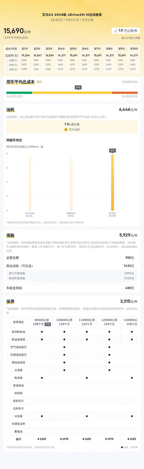 经过懂车帝大数据分析,该车的10年平均用车成本约为16183元/年,与同级别车相比处于适中的区间。具体的实际费用开销会根据车主的使用习惯、车况维护等情况有所变动。