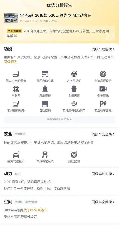 先让我们来了解一下这辆二手宝马5系的基本情况。这辆车的具体版本是——宝马5系 2018款 530Li 领先型 M运动套装,上牌日期2017年09月,表显里程10.20万公里,上牌地廊坊,新车指导价47.89万,如今二手车报价18.50万,过户次数1次。