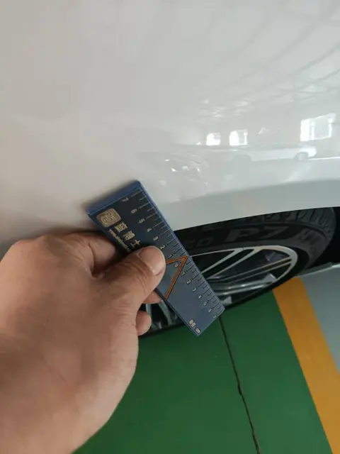 在外观检测部分,这辆车的表现一般,可能是前任车主的驾驶技术一般,或者对车辆使用并不是很爱惜。在外观部分还是存在一些瑕疵的,具体的瑕疵项分别为:右后翼子板掉漆。接下来我们将为您展示这些瑕疵项的实拍图。