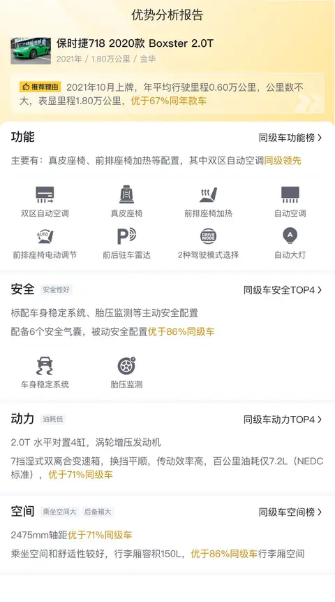 关于保时捷718 2020款 Boxster 2.0T就介绍到这里,如果你是一个性能与操控的追求者,恰好预算又不是特别高,那么不妨考虑一下。