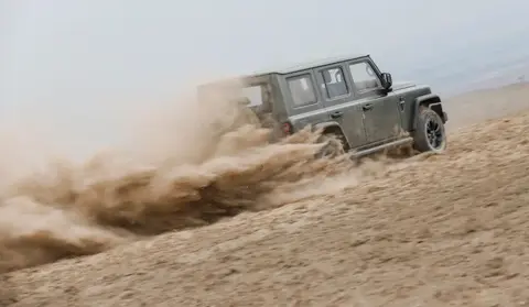侧面方正的设计展现其硬派越野风格,第一时间能想到牧马人和奔驰G级,但他做的更为硬核,前轮几乎与车头平齐,这大大提升越野通过能力,接近角做到40度、离去角36度、纵向通过角23.6度、最大涉水深度850毫米。要知道牧马人罗宾汉的36度是接近角的数据,奔驰G表现更弱。轮胎选的是三角轮胎TR259,主打耐用、省油,售价大约在500元左右。