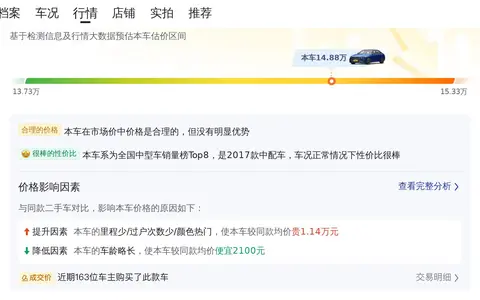 根据懂车帝的大数据分析,目前这款奔驰C级 2017款 改款 C 200 运动版的二手车行情大致在13.73万至15.33万之间。而本车的售价为14.88万,正好落在合理区间内,并且因为本车是经过懂车帝多项检测认证的,再加上如此低的里程数,所以这个价钱是非常合理的。