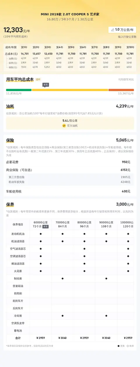 接下来,我们得聊聊这辆车的“伙食费”。根据估算(注意,是估算哦,具体得看个人怎么开),这辆车的年均综合用车成本大概是12,151元。乍一听,可能你觉得,这费用也不低啊!但是在快乐驾驶的路上,这些花费还是值得的。毕竟,开着这么一辆拉风的MINI,每天的好心情可是无价的!