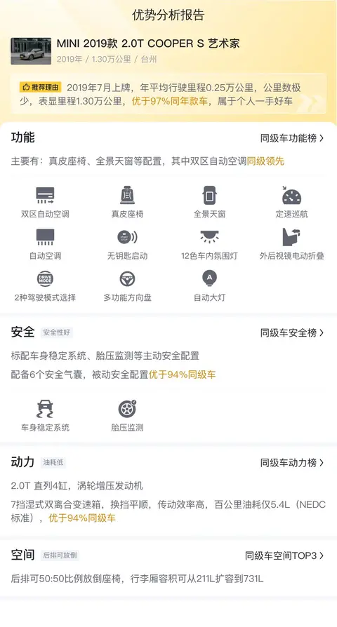 总的来说,这辆二手MINI 2019款 2.0T COOPER S 艺术家,报价16.8万,车况良好,里程适中。它适合追求个性和驾驶乐趣的朋友,但对于注重空间和经济性的家庭用户来说,可能不是最理想的选择。选不选它,就看你喜不喜欢这个“小精灵”啦!