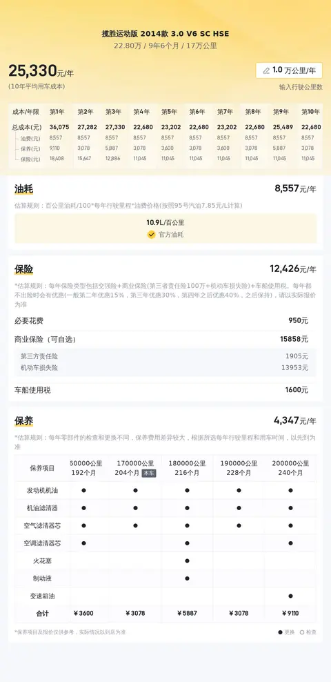 在不考虑贷款利息的情况下,预估的三年用车成本为 86050元,当然具体金额还需要根据车主的实际使用情况而定。