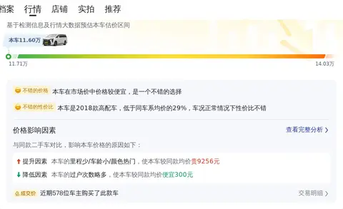 传祺M8 2018款 320T 尊贵版的市场行情价是11.71万-14.03万,它的报价是11.60万,报价偏低,同时保值率也高,因为它的保值率是46.02%,而同级车的是36.38%。