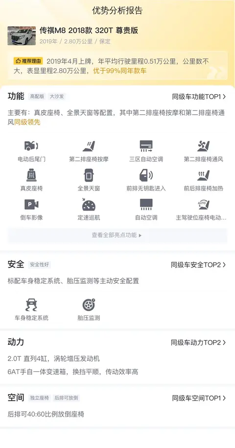 据估算,同级车的最低用车成本是13156元/年,最高是18376元/年,传祺M8 2018款 320T 尊贵版是14135元/年,所以不算低。