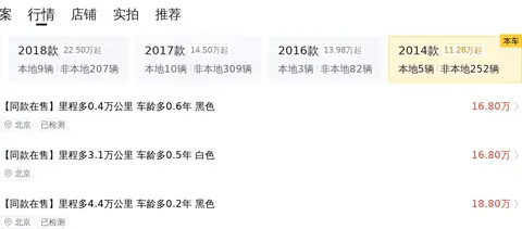 Macan 2014款 Macan 2.0T,新车含税价为60.36万,现在的二手车报价是14.18万,2015年4月首次上牌,在此期间过户2次。