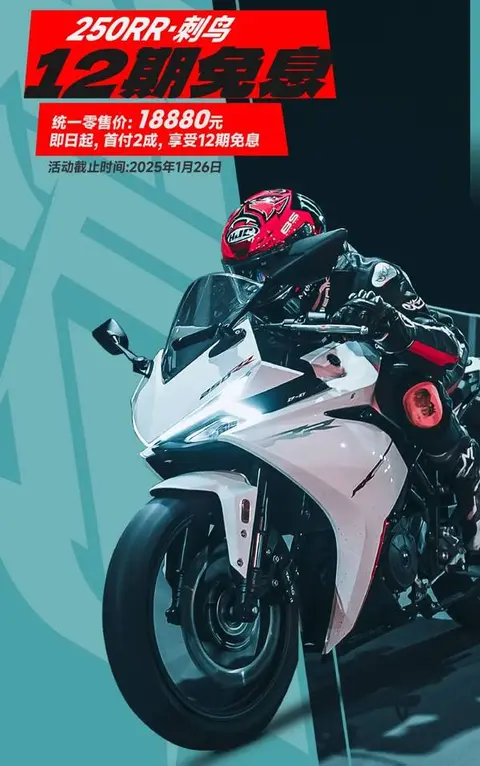 第一个,250RR刺鸟,直列双缸249.9cc水冷引擎,最大马力32.6匹,最大功率24千瓦,最大扭矩22.5牛米,极速可达每小时160公里。