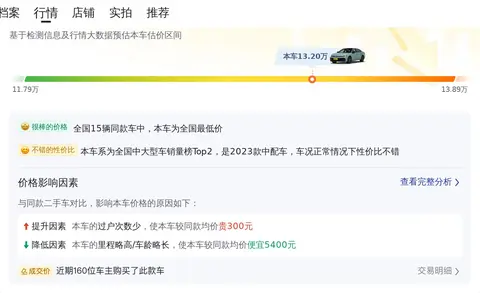 报价相对较高,因为帕萨特 2023款 330TSI 精英版的市场行情价是11.79万-13.89万,它的报价是13.20万,所以价格上不怎么占优势,但保值率较高,同级车的保值率是49.72%,它的保值率是60.67%。
