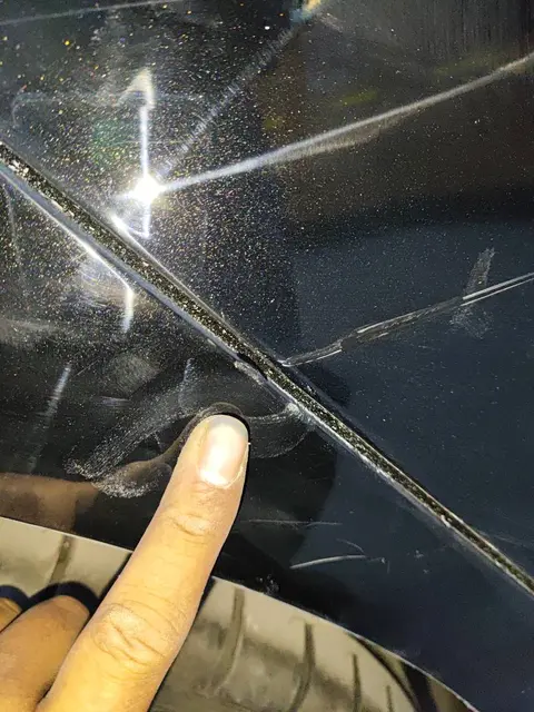 在外观检测部分,这辆车的表现一般,可能是前任车主的驾驶技术一般,或者对车辆使用并不是很爱惜。在外观部分的瑕疵还是比较多的,具体的瑕疵项分别为:发动机盖划伤、前保险杠划痕、后保险杠更换、左前门划伤、右前门划伤、左后门划伤、右后门划伤、后备箱盖划伤、左前翼子板掉漆、右前翼子板划伤、左后翼子板瑕疵、右后翼子板瑕疵。下边我们将为您展示这些瑕疵项的实拍图。