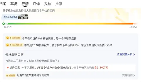 接下来,我们将通过同款车型的拍卖和售卖成交记录,来确认下该车型目前的市场行情大致在什么价位,也可以初步判断该车型未来一段时间内价格走势是上涨还是下跌。